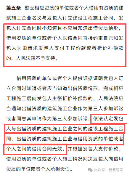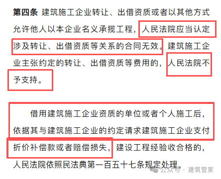 以前还能有个合同来约束,约定好给几个点的管理费,其余的转给干活的老板,现在这个新规定一出现,就把那局面给打破了,新规如果正式实施以后,再遇到这事法院会直接判定挂靠合同无效。