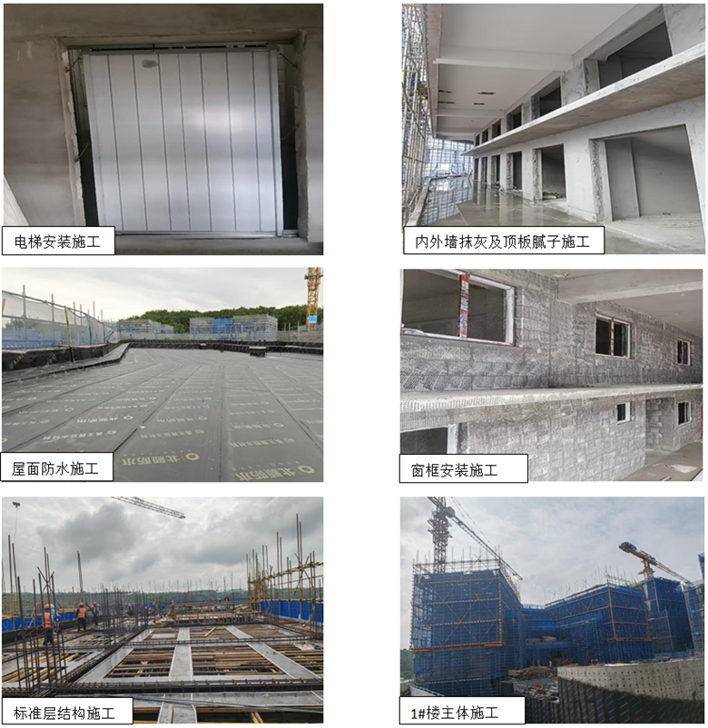 栖贤居项目2至13号楼结构全部封顶,1号楼结构到四层顶,2至9号楼结构验收完成,5号及7号楼内外抹灰完成70%。窗框及电梯正在安装施工中。工程质量、安全及进度可控。